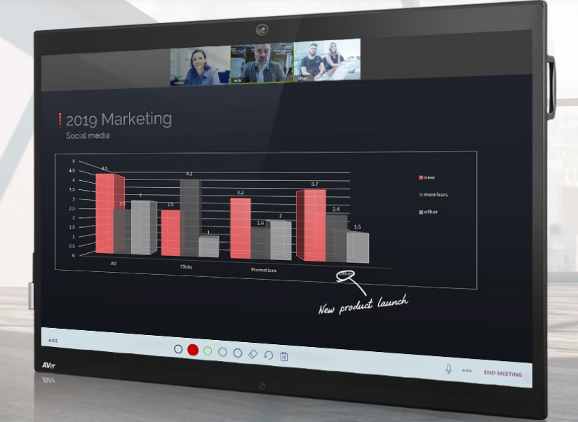 “AVer EP65 is truly plug and play for users, offering a range of collaboration capabilities both in and outside of Zoom meetings. The sturdy, anti-glare, anti-fingerprint touchscreen glass feels natural and comfortable when using whiteboard features with fingers or the pen. Multiple people may also annotate simultaneously. Embedded Zoom Rooms software provides a similar look and feel across desktop, browser, mobile and room-based clients, which helps reduce training requirements and support tickets as well as drives utilization of in-room collaboration technology investments such as the EP65. Outstanding audio and video quality and adjustability further enhance the meeting room experience where it is deployed. As a modular system, the EP65 can support a variety of use cases, user preferences and environments spanning collaboration sessions with distributed or local-only participants, single or dual screen, and support for a variety of external components.”